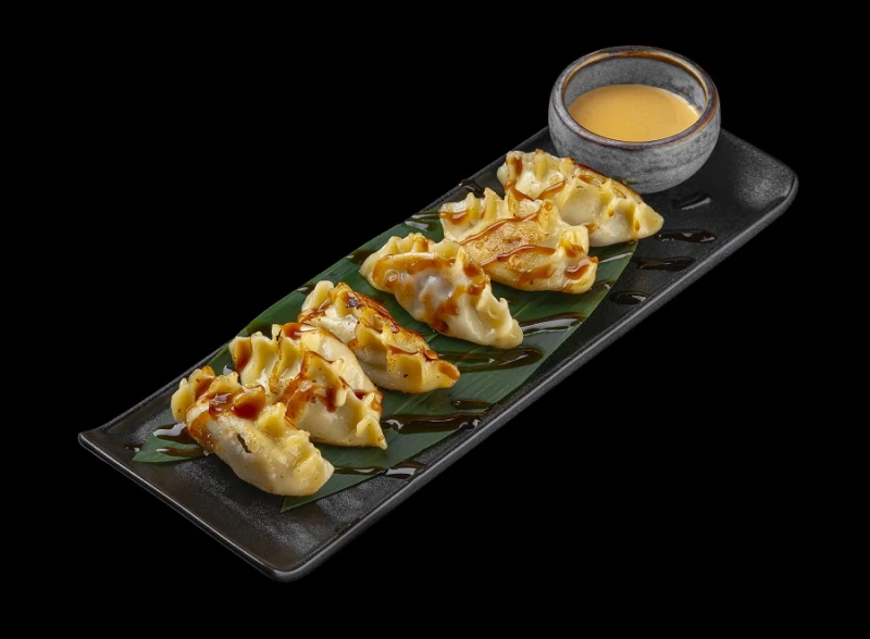 Свинина, говядина, специи, тесто на пшеничной муке, соусы: унаги, Кан